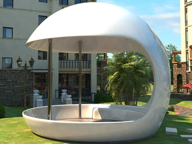 ? 現如今大街小巷能見到的戶外玻璃鋼屋景觀亭子造型定制功能齊全,包含售賣區+衛生間+休息區,人們買上一杯咖啡悠閑的坐下來享受愜意時光,不再是印象中狹小擁擠僅能一個人活動的區域,草坪上,街區里,公園里,商場中,可單個呈現,也可按需組合。作為新型的綠色建筑玻璃鋼屋景觀亭子,其造型設計和功能特點值得建筑設計師進行深入斟酌和思考,建筑設計的新奇性,建筑設計的低碳的特點,以及售賣亭門頭裝飾的發展速度,都是優于其他建筑類型的重要特點。售賣亭門頭裝飾可以通過不同的設計,變成不同的造型。